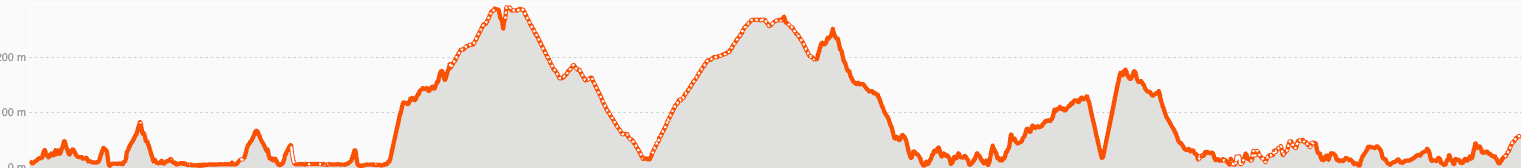 Elevation: gradual climbs and descents; total elevation gain roughly 1,600 m